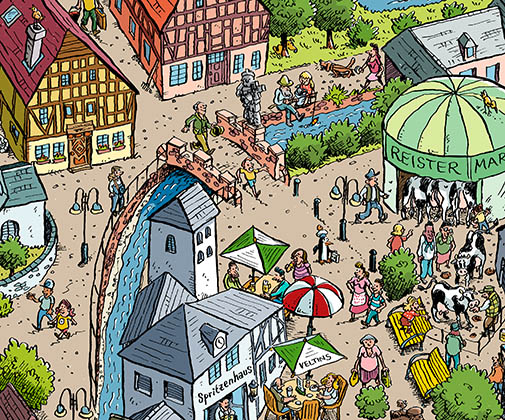 Hier sehen Sie eine Auswahl meiner Wimmelbilder und Illustrationen für Kunden in Deutschland, Österreich und der Schweiz.